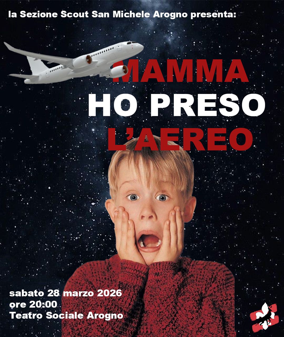 Sabato 28 marzo dalle 20.00 presso il Teatro Sociale si esibiranno i nostri scout, grandi e piccini, in uno spettacolo dal titolo "MAMMA HO PRESO L'AEREO".